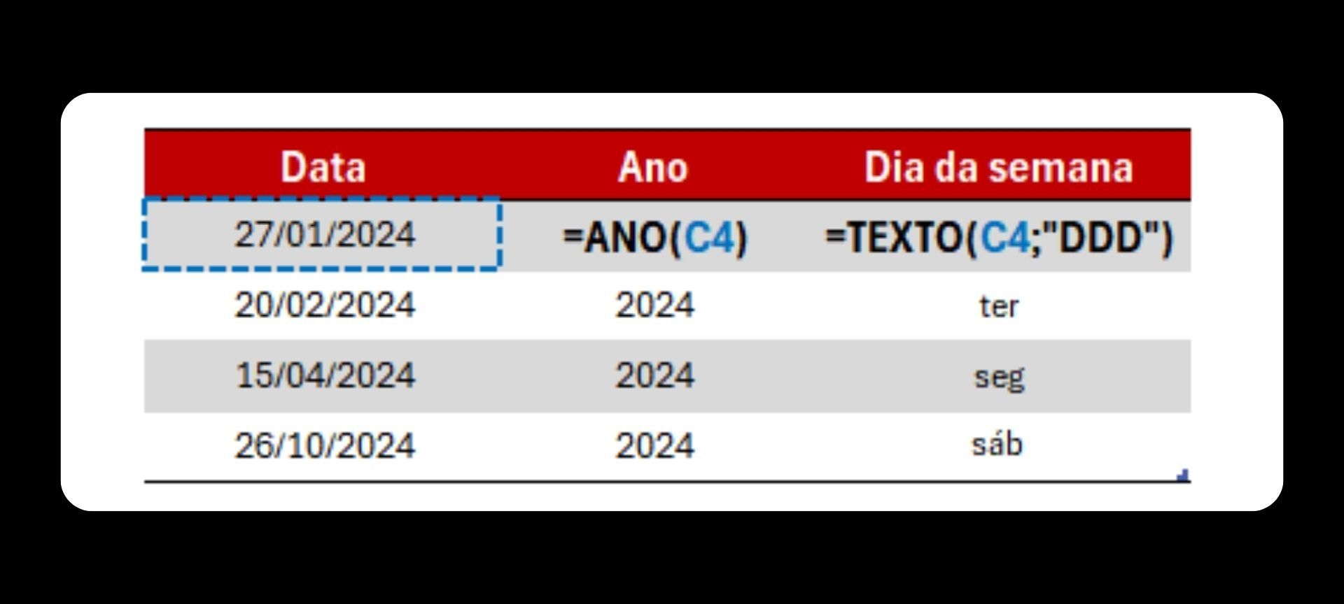 Aprenda sobre as funções de texto e data mais utilizadas no dia a dia como, DATA, DATADIF, DIA, MÊS, ANO, EXT.TEXTO e outras.